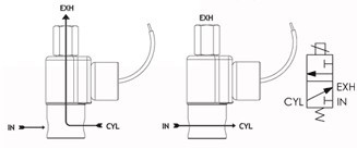 二位三通常闭型电磁阀(EXH端口直排外式) 该系列电磁阀拥有广泛配置选项范围和卓越可靠的性能。是控制阀门行业里的标杆。空气,水和其他液体使用标准的丁腈橡胶密封件。热水,蒸汽,汽油,和其他油脂类介质需要特殊的密封材料。