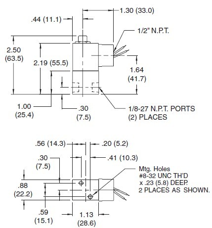 阀体材质:钝化铝合金(标配.) 内部材质:不锈钢. 密封材质:丁晴橡胶 (Buna) (标配). 可选:FKM、PTFE、EPDM、FFKM等.* 通径规格:见上列表. 接口规格: 1/8″ NPT (标配.) 外壳类型:引线, 1/2” NPT管道引线和 DIN 端子连接型. 安全认证:经过 UL 和 CSA防爆安全认证 .* 使用寿命: 大于500万次,取决于应用程序、维护保养等因素. 阀体重量: 135 g. 维修包:见上列表. 选配说明:可选配的项包括:压力、介质、电压、接口规格、材质、温度、防爆等*